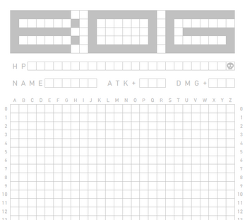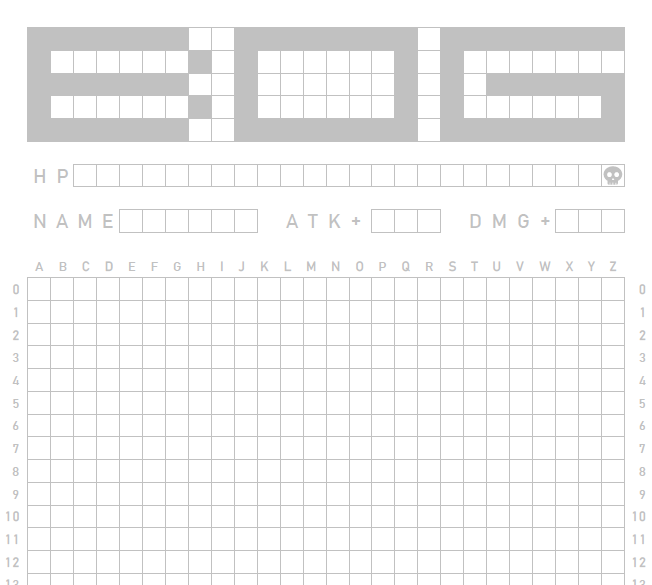 Some squares may contain threats where you will need to roll the die for combat. Some squares may cause your attack strength to increase or the damage you take to increase -- fill in the corresponding squares for "ATK+" and "DMG+". As you take damage, you will fill in the "HP" boxes -- if you reach the skull, it's game over.